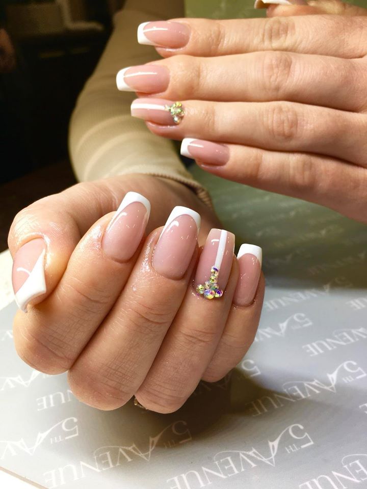 The most popular we find is ombre effect or also called baby boomer. As well as french style nails. As for colours, it would be CND shellac bouqet, veiled, romantique or negligee. But that is very individual to every bride.